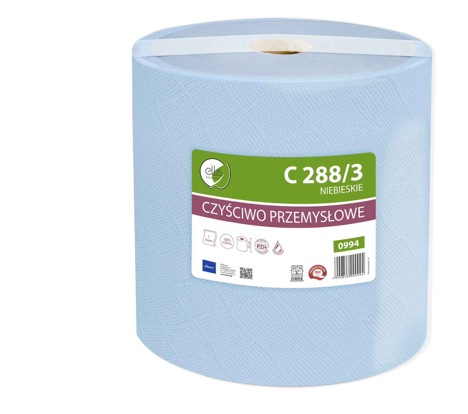 Wytrzymałe, trzywarstwowe, makulaturowe czyściwo o wysokiej absorbcji płynów.